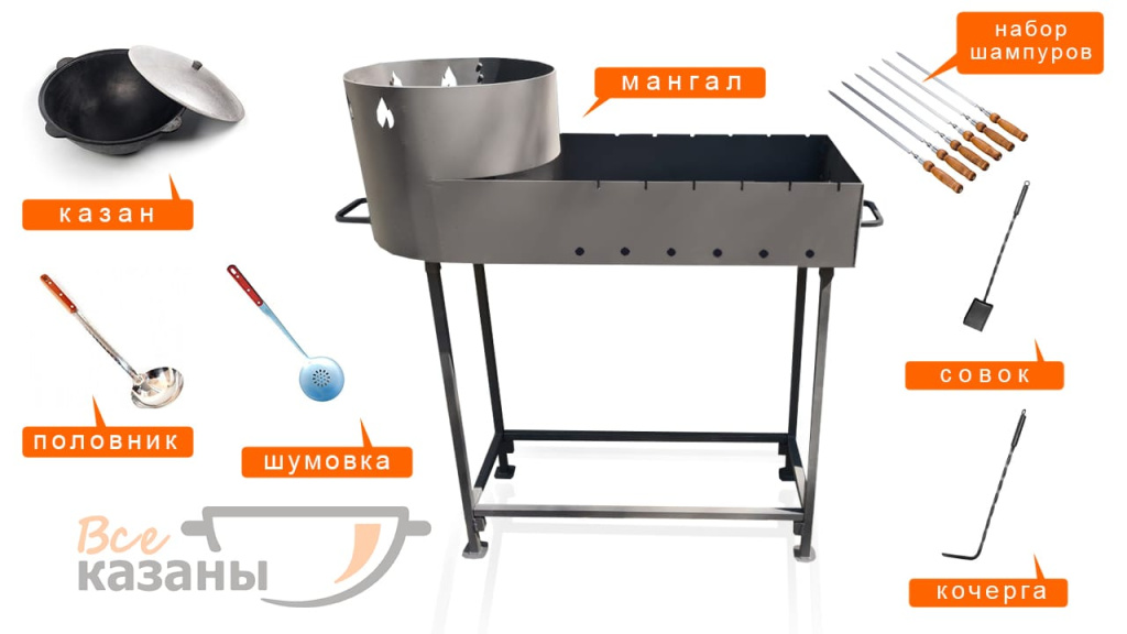 казан узбекский 10 л чугунный с алюминиевой крышкой, шумовка 46 см, половник 46 см, шампур с деревянной ручкой 6 шт, кочерга, совок |